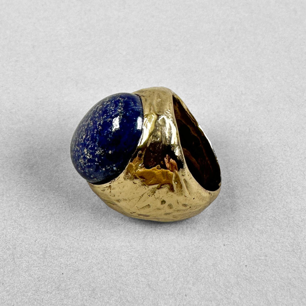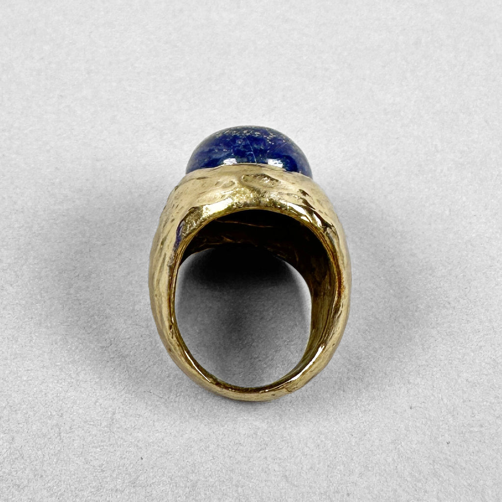 Anello chevaliere in bronzo con cabochon di lapis-lazuli