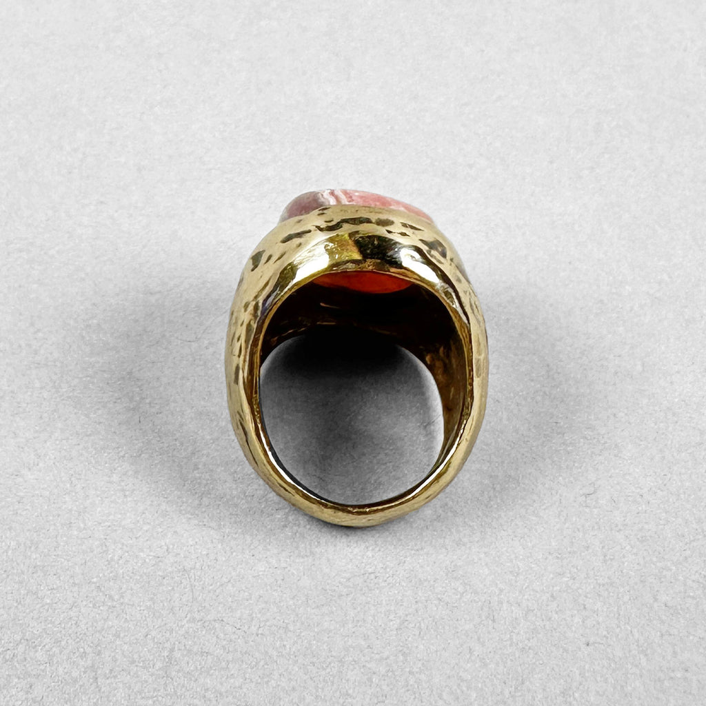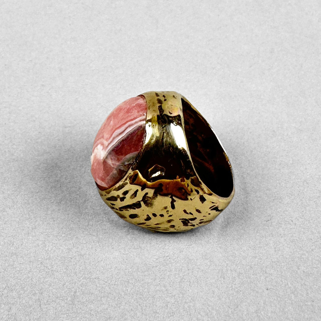 Anello chevaliere in bronzo con cabochon di rodocrosite