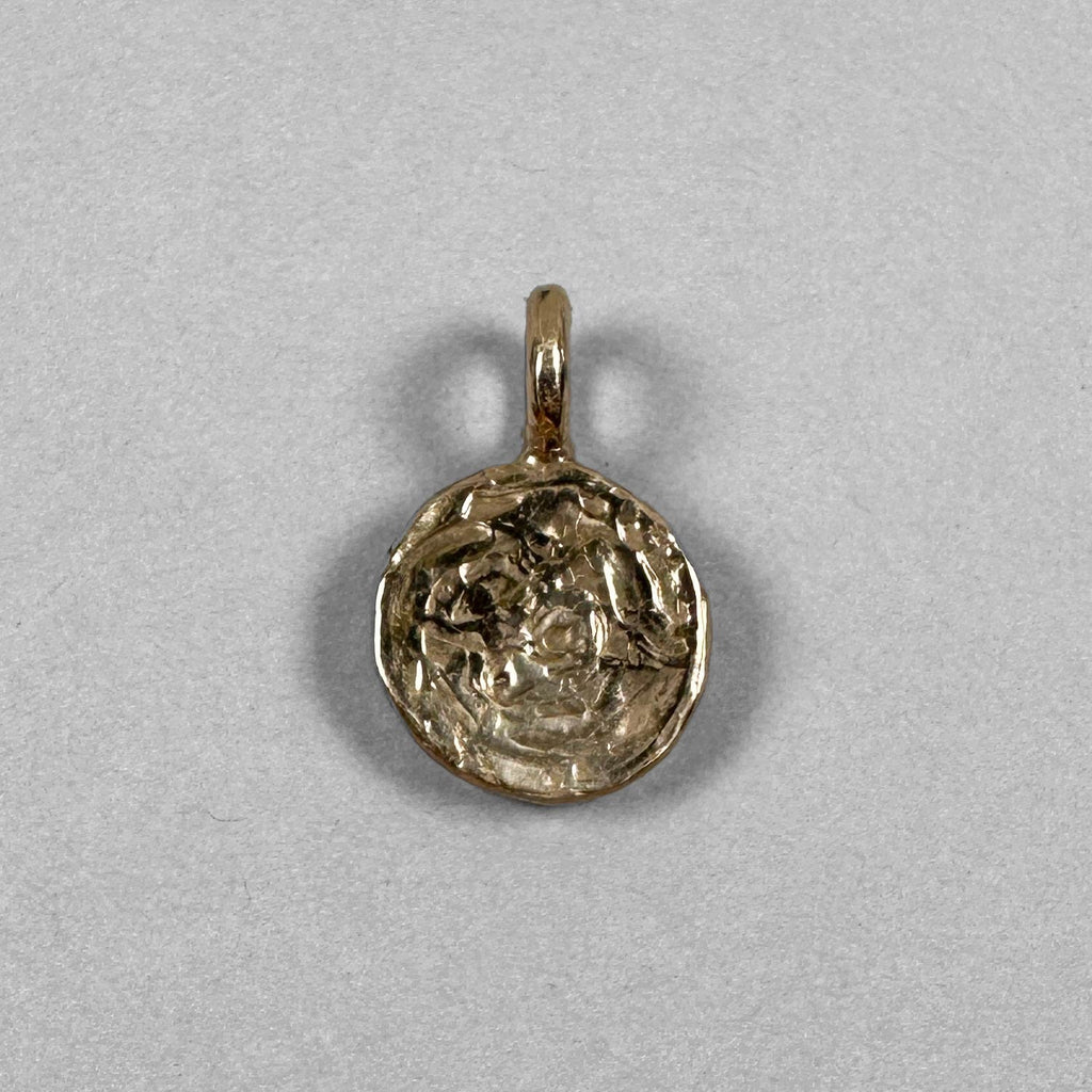 Il pendente è venduto con un cordone in pelle color cuoio. È possibile associare questo pendente a una catena di argento patinato con chiusura in bronzo. La lunghezza della catena può essere personalizzata