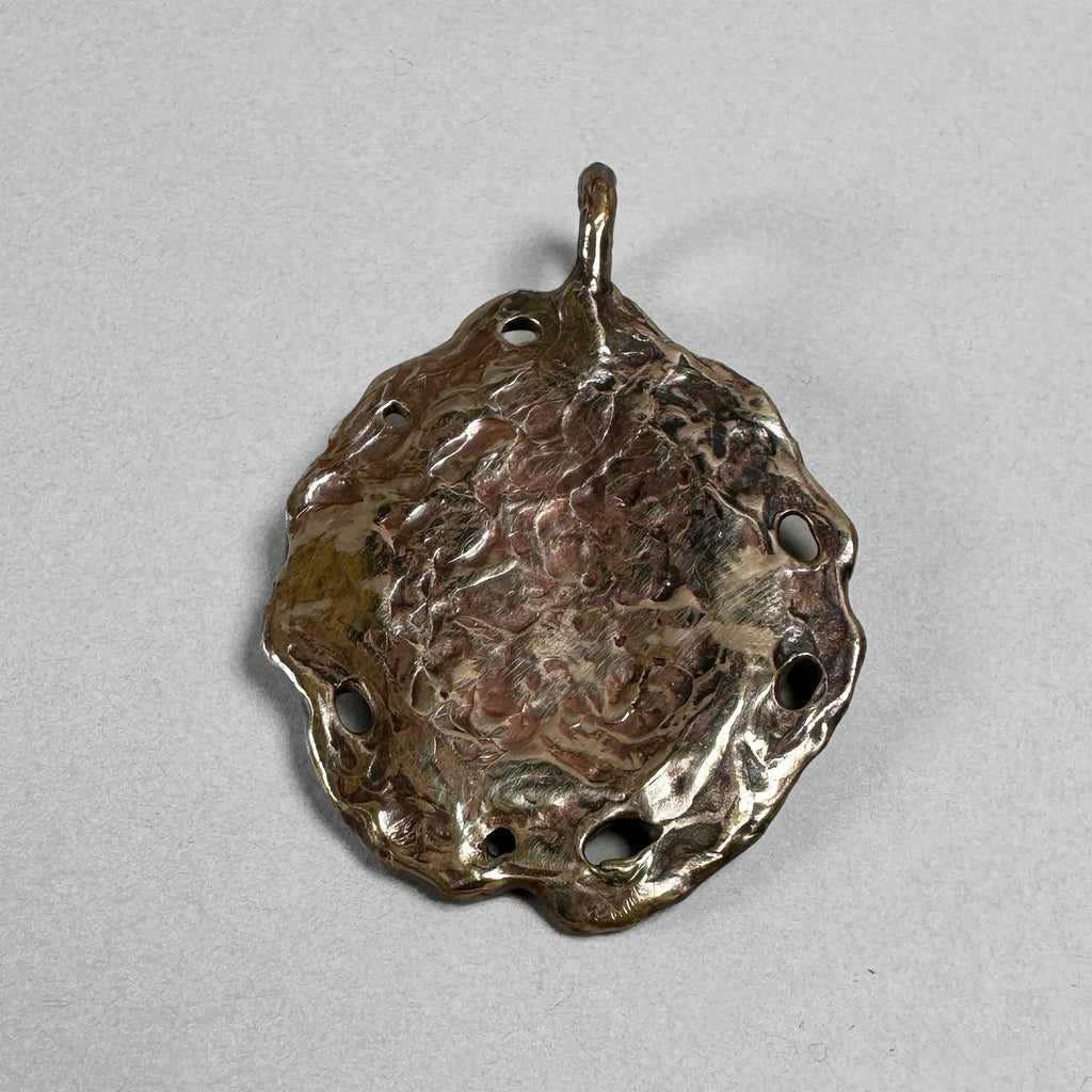 Il pendente è venduto con un cordone in pelle color cuoio. È possibile associare questo pendente a una catena di argento patinato con chiusura in bronzo. La lunghezza della catena può essere personalizzata