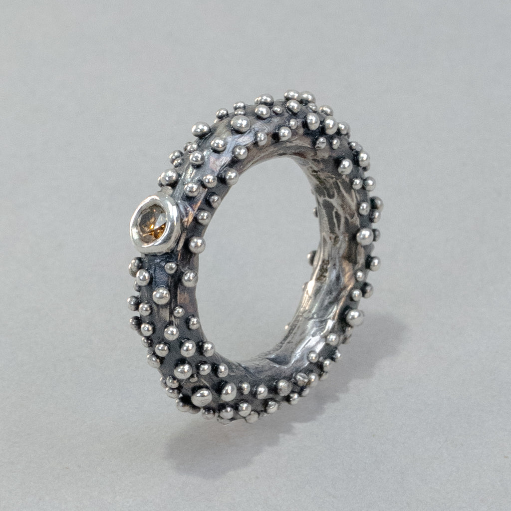 Pezzo emblematico della collezione Granuli realizzato con la tecnica della fusione a cera persa, da portare singolarmente o in accumulazione (diversi colori e spessori)