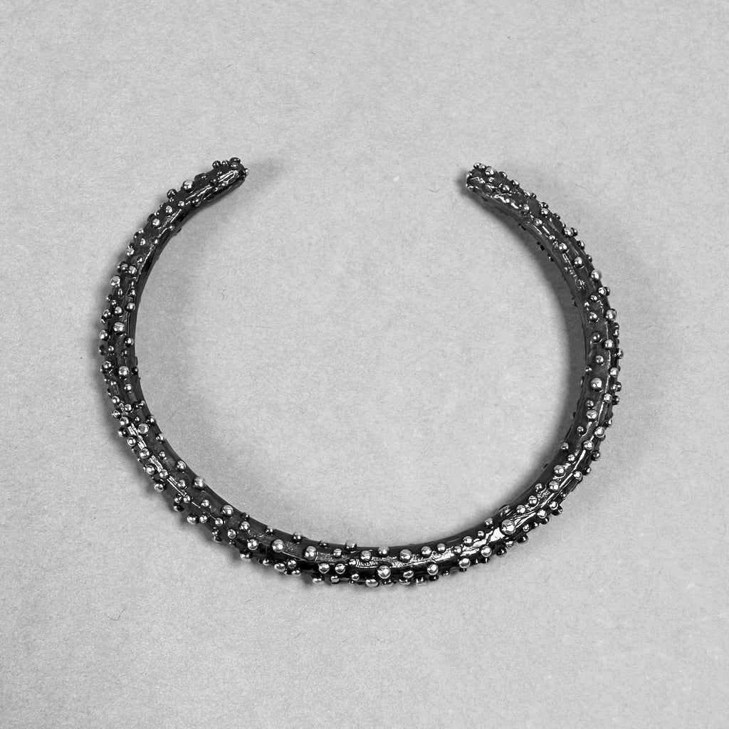 Bracciale rigido con texture granulata. Disponibile in bronzo, argento 925 e argento 925 patinato nero
