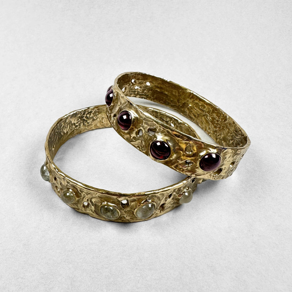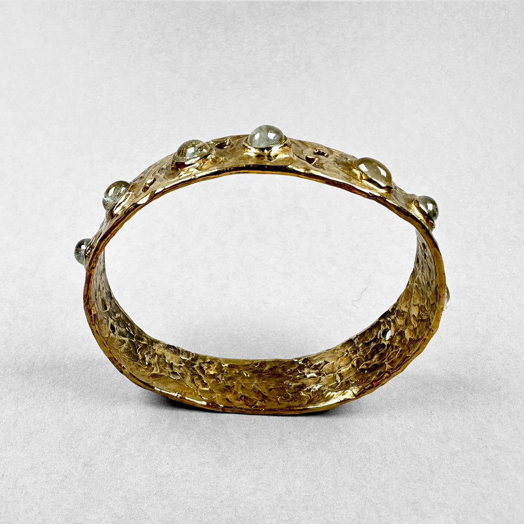 Bracciale in bronzo testurizzato e cabochon di acquamarina