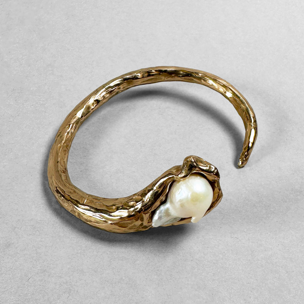 Bracciale in bronzo e perla barocca di acqua dolce